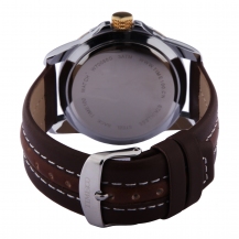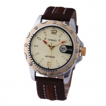 时尚大气圆形表盘真皮带日历石英男表 全国包邮