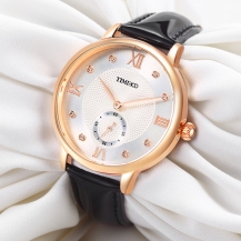 时光一百 时尚复古闪钻亮光真皮石英女表