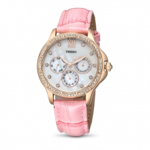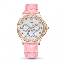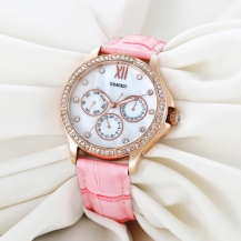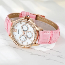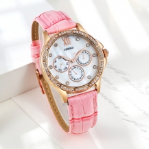 时光一百时尚贝面闪钻三眼六针皮带石英女表