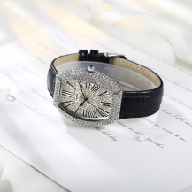 时光一百 酒桶型满天星闪钻皮带石英女表