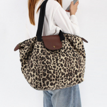 户外休闲帆布手提包女时尚购物袋大容量豹纹手拎斜跨托特饺子包