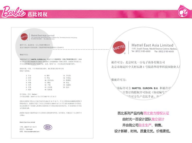 子公司:广州时光一百饰品有限公司 联系电话:+86 20 39931201; 香港时光一百有限公司 联系电话:+852 2743 3928