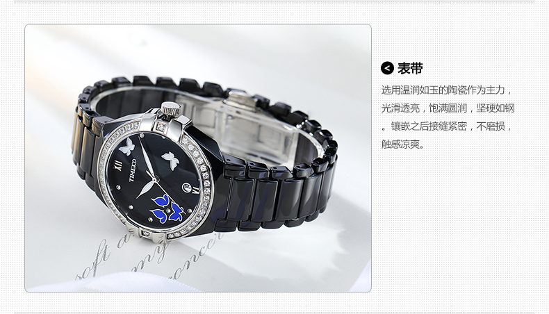 复古甜美蝴蝶水钻陶瓷女士腕表