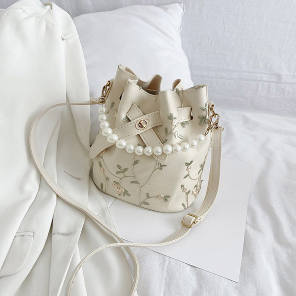 新款女包网红韩版时尚百搭蕾丝珍珠子母包单肩斜跨手提水桶包bags