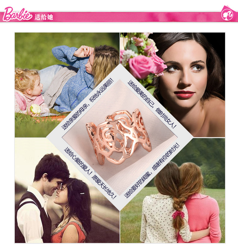 芭比派对系列 山茶花镂空玫金色指环 (全国包邮)