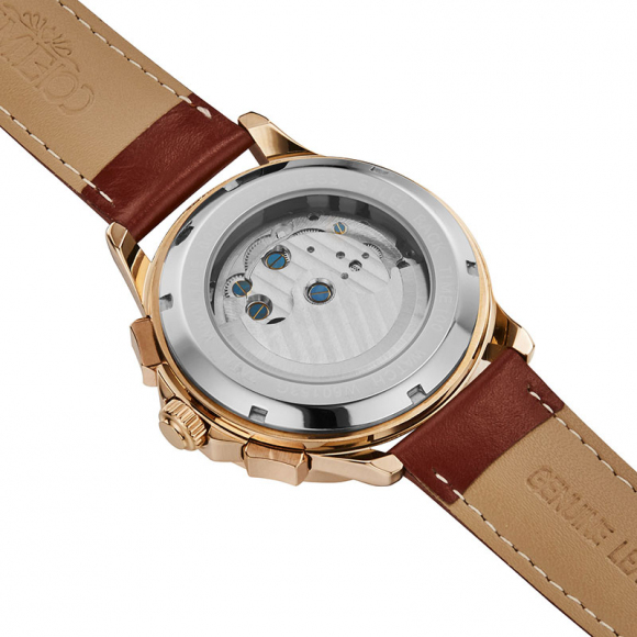 新款多功能年月日显示机械表时尚休闲牛皮带圆盘飞轮机芯指针男士手表